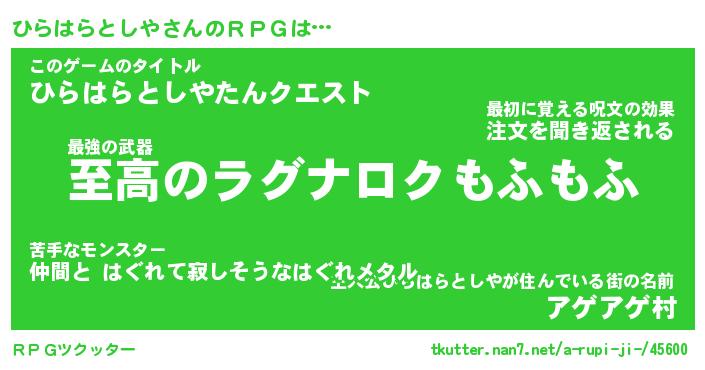 | ヒーロー風カッコイイあだ名 | 『スーパーヒラハラトシヤ』 |