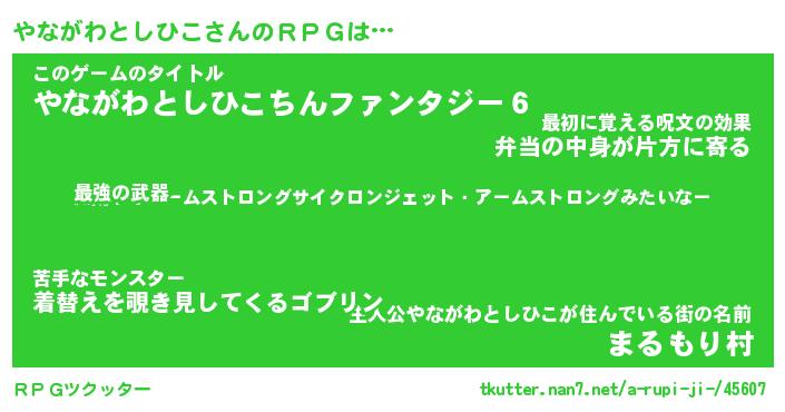 | 男性向けラノベタイトル風あだ名 | 『やながわとしひこの憂鬱』 |