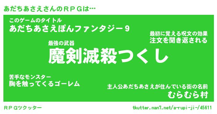 | 胡散臭い通販商品みたいなあだ名 | 『必ず成功する霊験あらたかなお札…その名も「あだちあさえ」』 |