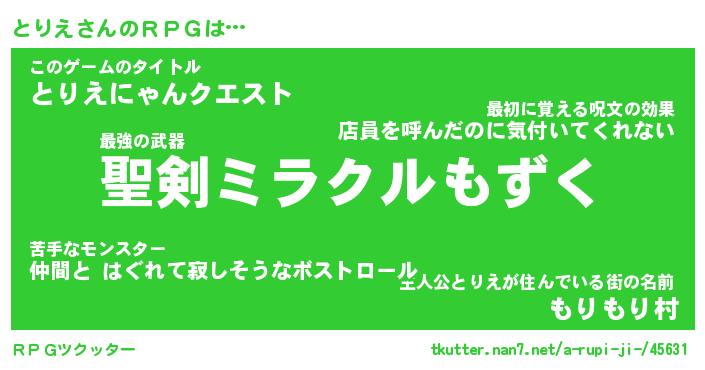 | ヒーロー風カッコイイあだ名 | 『スーパートリエ』『ウルトラとりえマン』 |
