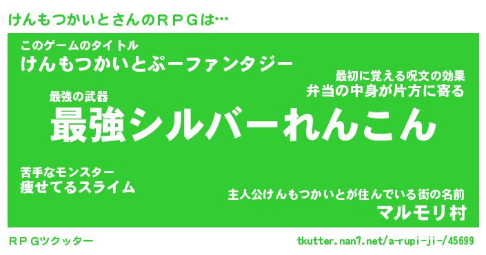 | 男性向けラノベタイトル風あだ名 | 『ケンモツカイトアートオンライン』 |