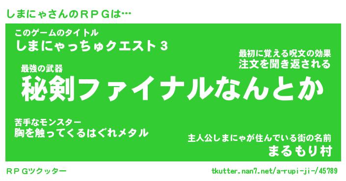 | ファンタジー風あだ名 | 『シマフェル』『エターナルシマニャー』 |