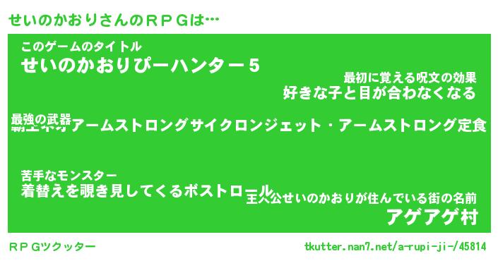 | 伝説のあだ名 | 『封印されし竜騎士せいのかおり』 |