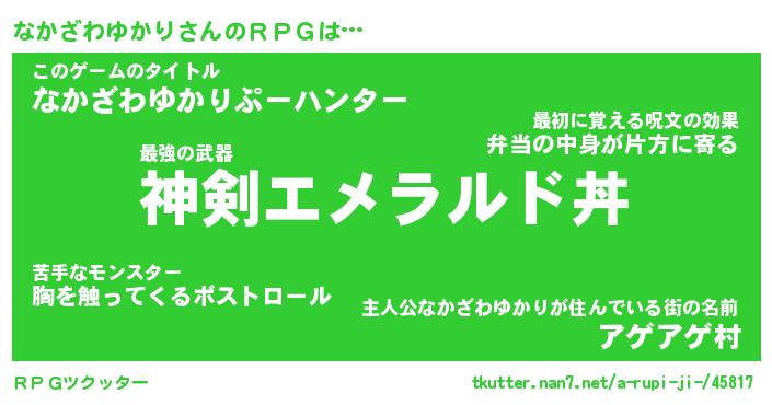 | 胡散臭い通販商品みたいなあだ名 | 『モテモテ間違いなし霊験あらたかなお札…その名も「なかざわゆかり」』 |