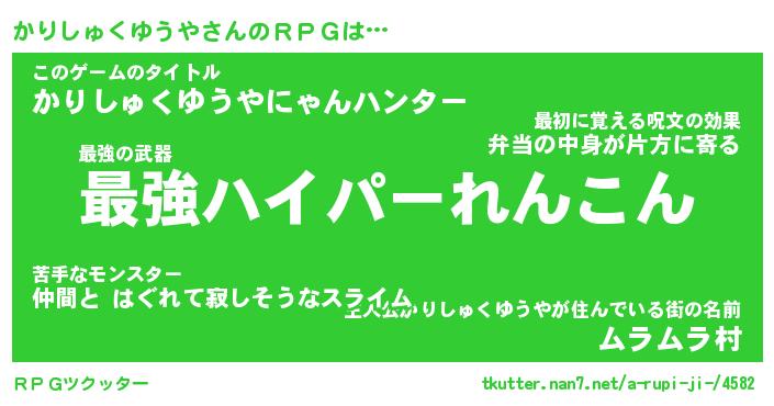 | 男性向けラノベタイトル風あだ名 | 『カリシュクユウヤアートオンライン』 |