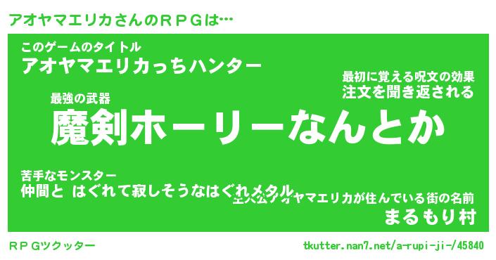 | 伝説のあだ名 | 『伝説の傭兵アオヤマエリカ』 |