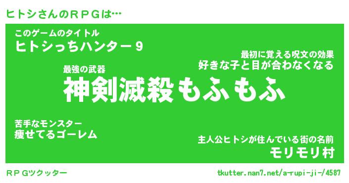 | ファンタジー風あだ名 | 『ヒトフェル』『エターナルヒトシー』 |