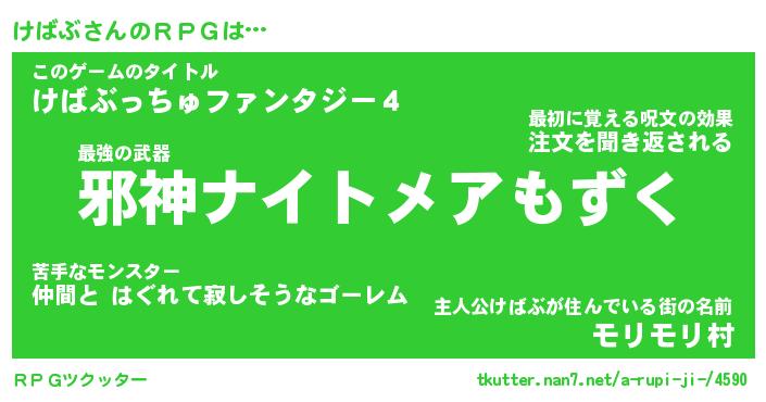 | 意味不明あだ名 | 『ペロリンけばぶ』『けばぶフォーエバー』 |