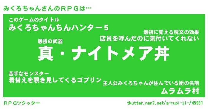 | ツイッター | みくろちゃんさんのツイッターID『namakemono_nyan』 |