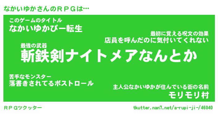 | ファンタジー風あだ名 | 『ナカフェル』『エターナルナカイユカー』 |