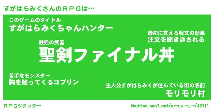 | 胡散臭い通販商品みたいなあだ名 | 『必ず成功するブレスレット…その名も「すがはらみく」』 |