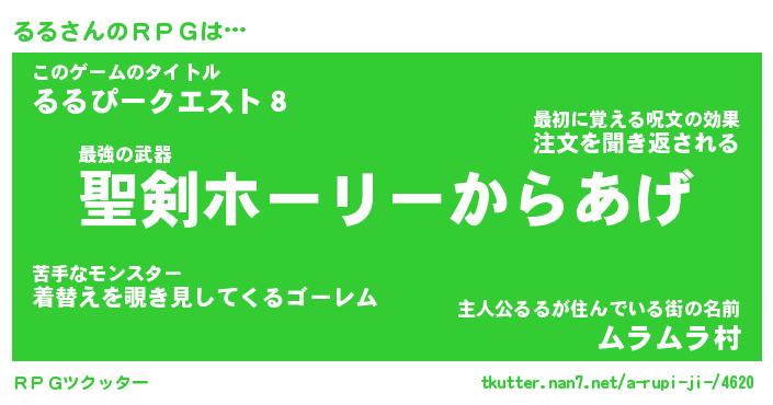 | 伝説のあだ名 | 『伝説の傭兵るる』『最強の忍者るる』 |