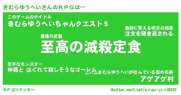 | 男性向けラノベタイトル風あだ名 | 『キムラユウヘイアートオンライン』 |