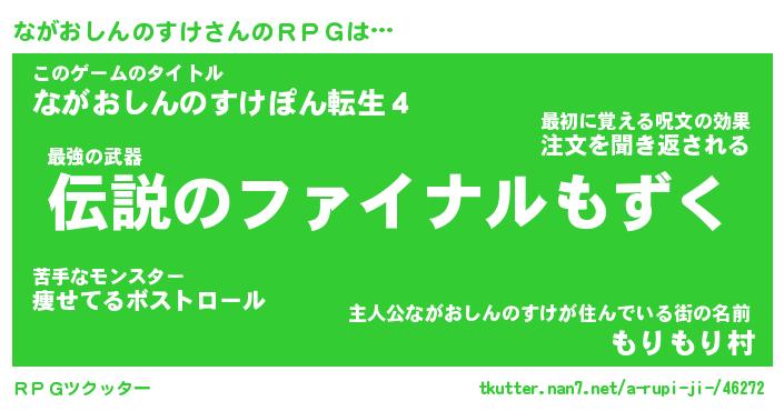 | 男性向けラノベタイトル風あだ名 | 『ながおしんのすけの憂鬱』 |