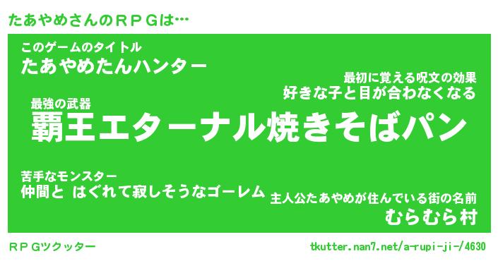 ヒーロー風カッコイイあだ名 | 『スーパータアヤメ』『幻影騎士タア』 |