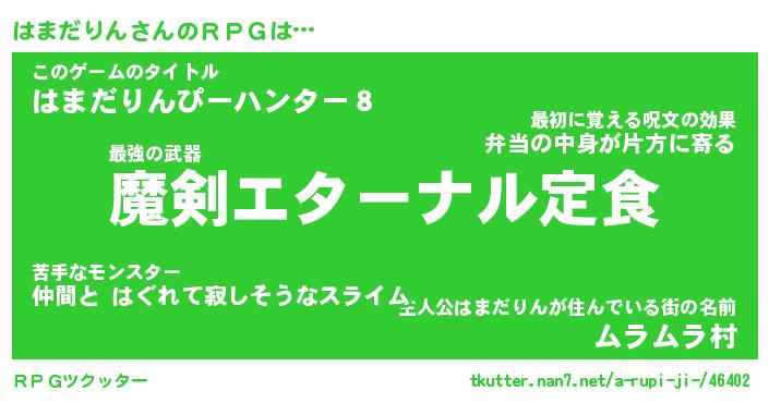 | 伝説のあだ名 | 『伝説の傭兵はまだりん』 |