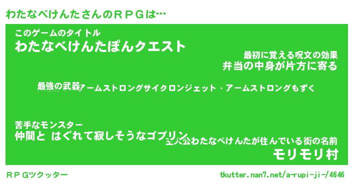 | 伝説のあだ名 | 『不死鳥の竜騎士わたなべけんた』 |