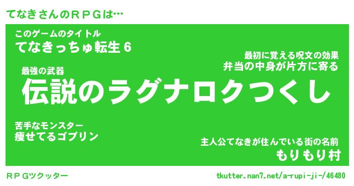 | 男性向けラノベタイトル風あだ名 | 『てなきの憂鬱』 |