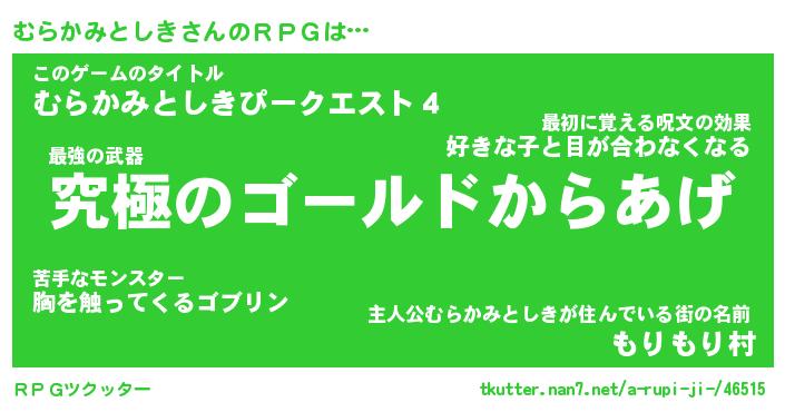 | 男性向けラノベタイトル風あだ名 | 『ムラカミトシキアートオンライン』 |
