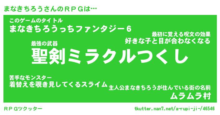 | 伝説のあだ名 | 『伝説の竜騎士まなきちろう』 |