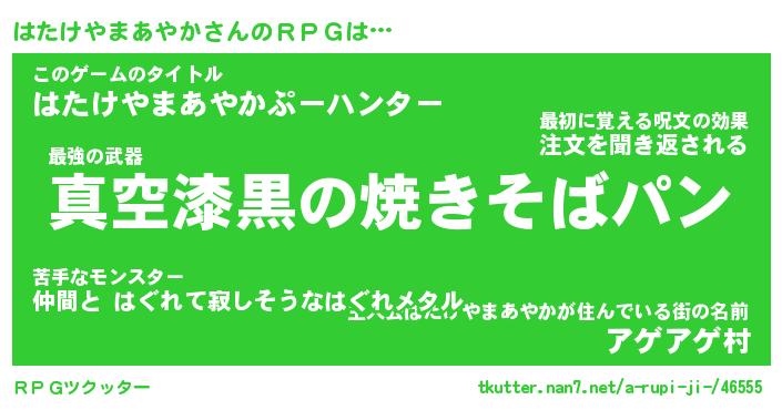 | ヒーロー風カッコイイあだ名 | 『スーパーハタケヤマアヤカ』 |