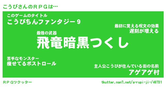 | ファンタジー風あだ名 | 『コウフェル』『エターナルコウビー』 |