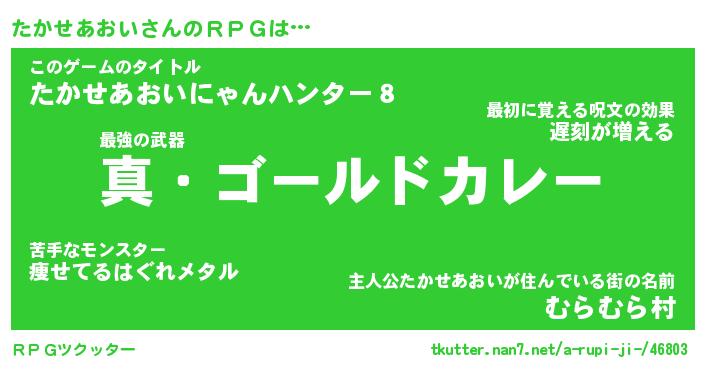 | 伝説のあだ名 | 『封印されし傭兵たかせあおい』 |