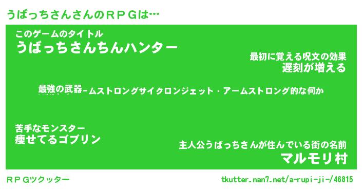 | 男性向けラノベタイトル風あだ名 | 『うばっちさんの憂鬱』 |
