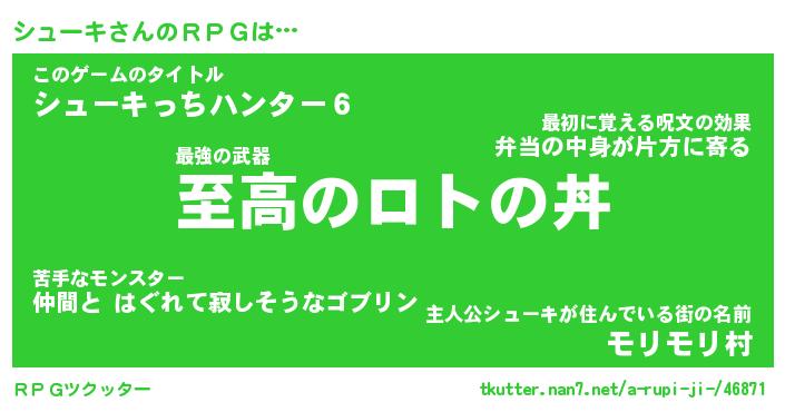 | ファンタジー風あだ名 | 『シュフェル』『エターナルシューキー』 |