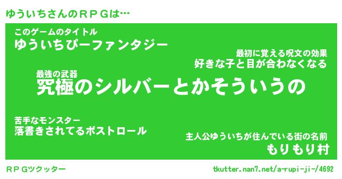 | ファンタジー風あだ名 | 『ユウフェル』『エターナルユウイチー』 |