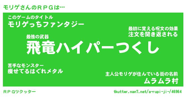 | 男性向けラノベタイトル風あだ名 | 『モリゲアートオンライン』 |