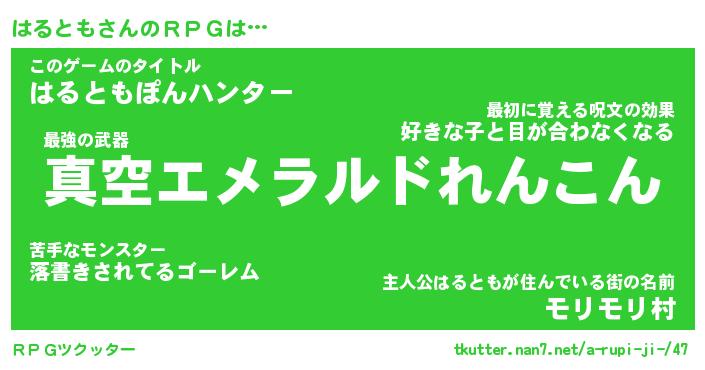 | ヒーロー風カッコイイあだ名 | 『スーパーハルトモ』『幻影騎士ハル』 |