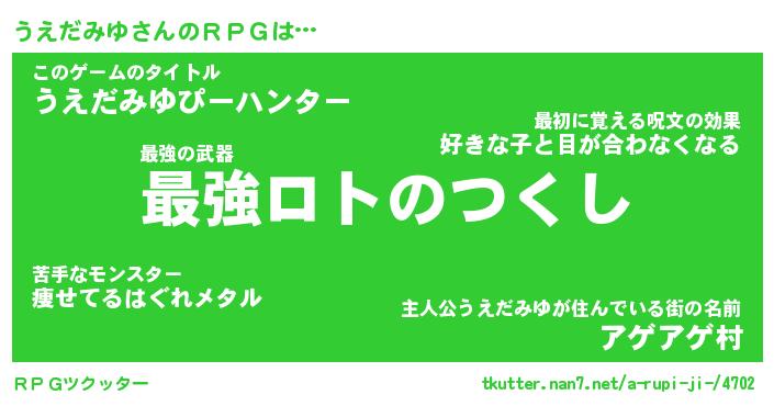 | ファンタジー風あだ名 | 『ウエフェル』『エターナルウエダミユー』 |