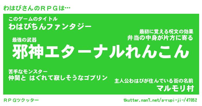 | 胡散臭い通販商品みたいなあだ名 | 『億万長者になれる水晶球…その名も「わはび」』 |