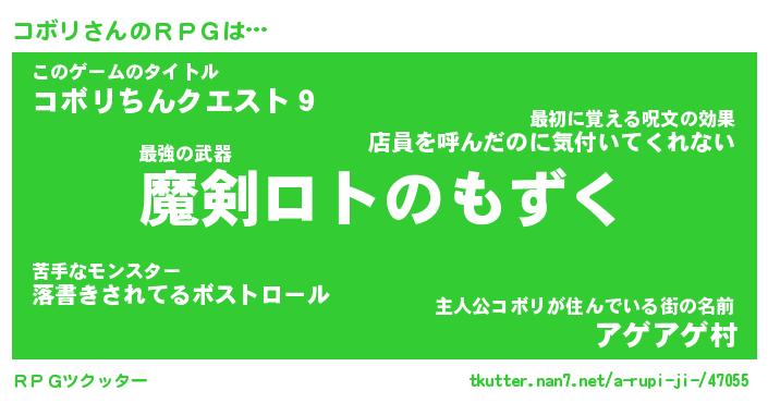 | 男性向けラノベタイトル風あだ名 | 『コボリの憂鬱』 |