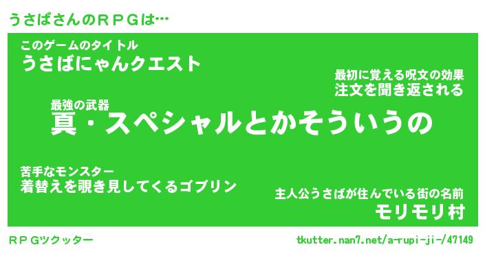 | ヒーロー風カッコイイあだ名 | 『スーパーウサバ』『ウルトラうさばマン』 |