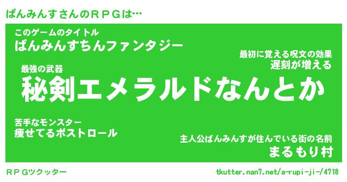 | 男性向けラノベタイトル風あだ名 | 『ばんみんすの憂鬱』 |