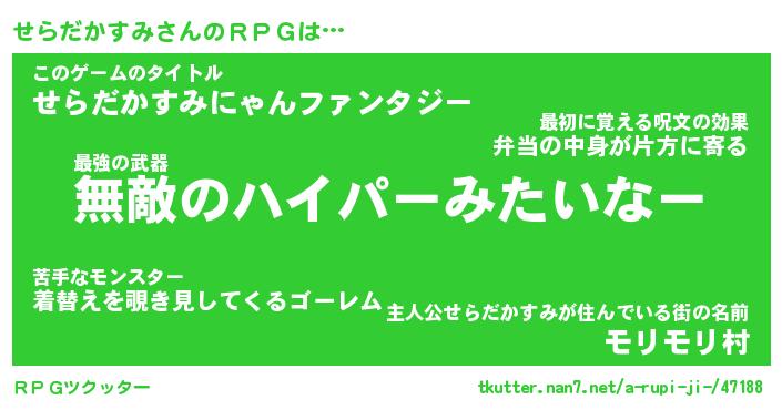 | ヒーロー風カッコイイあだ名 | 『スーパーセラダカスミ』『魔戒騎士セラ』 |