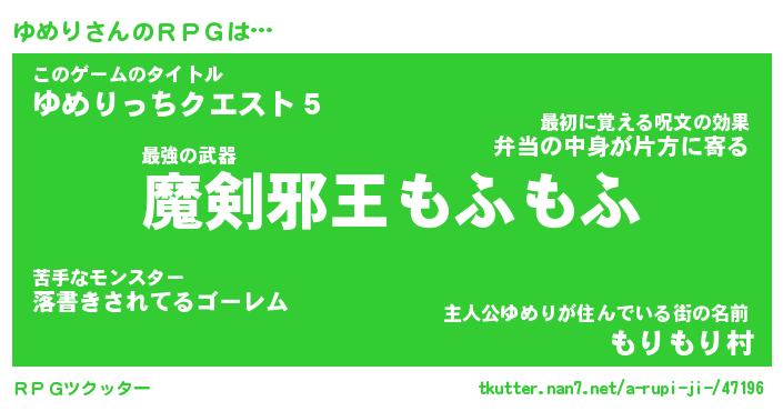 | 伝説のあだ名 | 『伝説の傭兵ゆめり』『最強の忍者ゆめり』 |