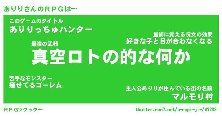 | 伝説のあだ名 | 『封印されし竜騎士ありり』 |