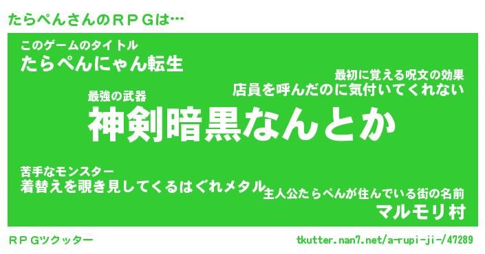 | 男性向けラノベタイトル風あだ名 | 『たらぺんの憂鬱』 |