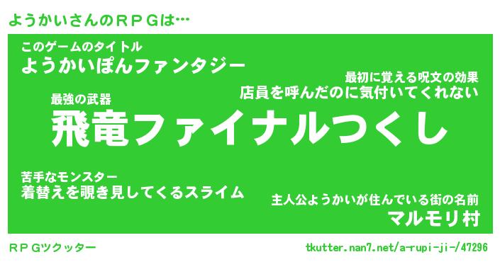 | ファンタジー風あだ名 | 『ヨウフェル』『エターナルヨウカイー』 |