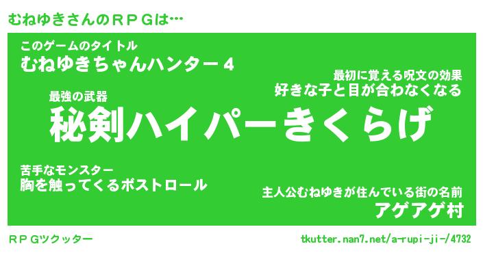 | 女子向けラノベタイトル風あだ名 | 『むねゆき姫と円卓の騎士』 |