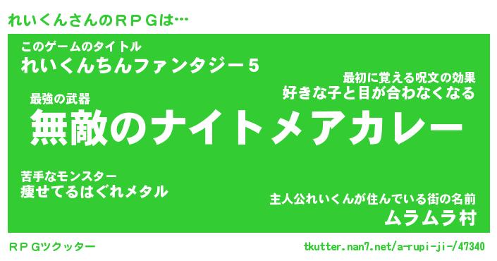 | 伝説のあだ名 | 『封印されしスナイパーれいくん』 |