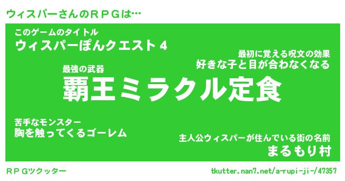 | ファンタジー風あだ名 | 『ウィフェル』『エターナルウィスパーー』 |