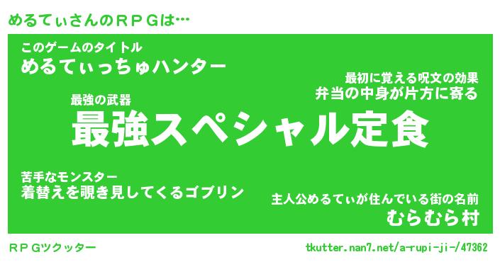 | ヒーロー風カッコイイあだ名 | 『スーパーメルティ』『幻影騎士メル』 |