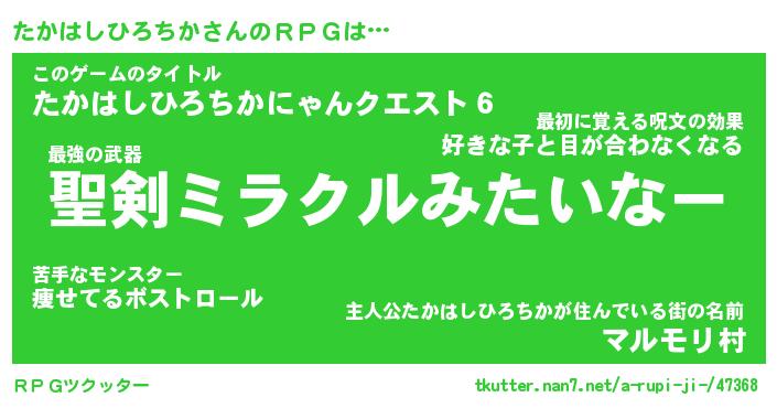 | 胡散臭い通販商品みたいなあだ名 | 『必ず成功するブレスレット…その名も「たかはしひろちか」』 |