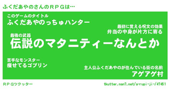 | ヒーロー風カッコイイあだ名 | 『スーパーフクダアヤノ』『天弓騎士フク』 |