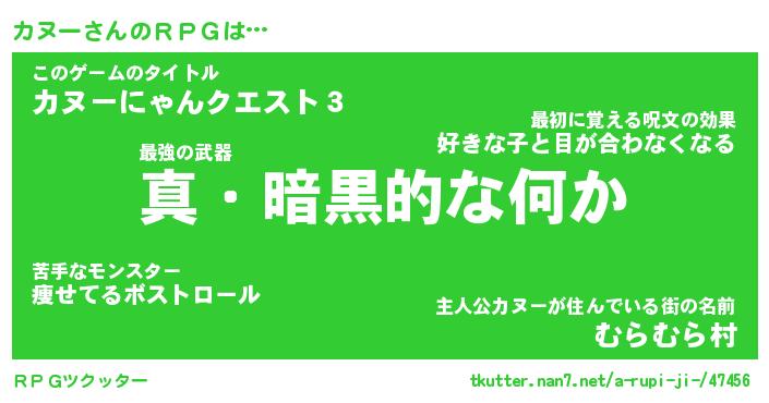 | ファンタジー風あだ名 | 『カヌフェル』『エターナルカヌーー』 |