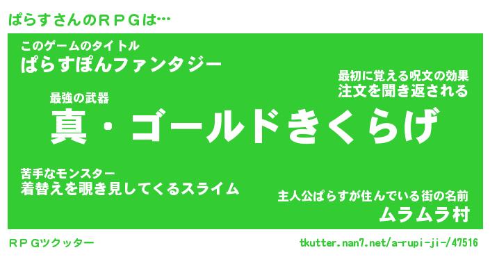 | ヒーロー風カッコイイあだ名 | 『スーパーパラス』『ウルトラぱらすマン』 |